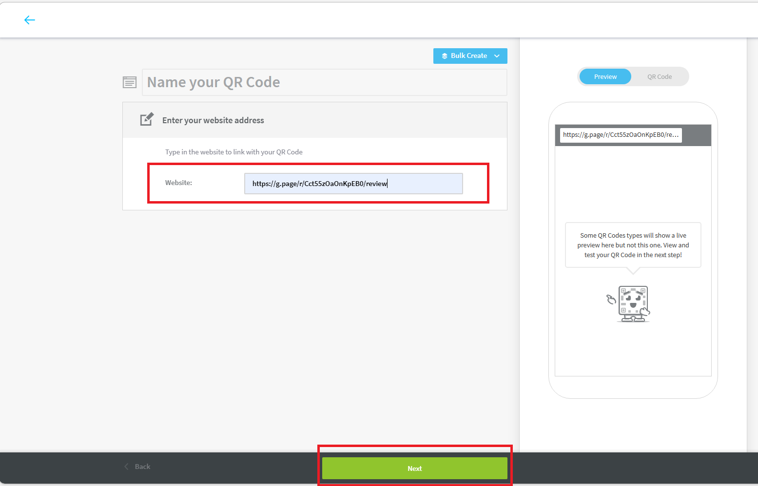 - Phần Short URL là phần bạn sửa lại đoạn tên đường dẫn gửi link khách đánh giá phòng khi trường hợp mã QR Code khách không quét được (trường hợp này hiếm) nhưng cứ backup cho chắc