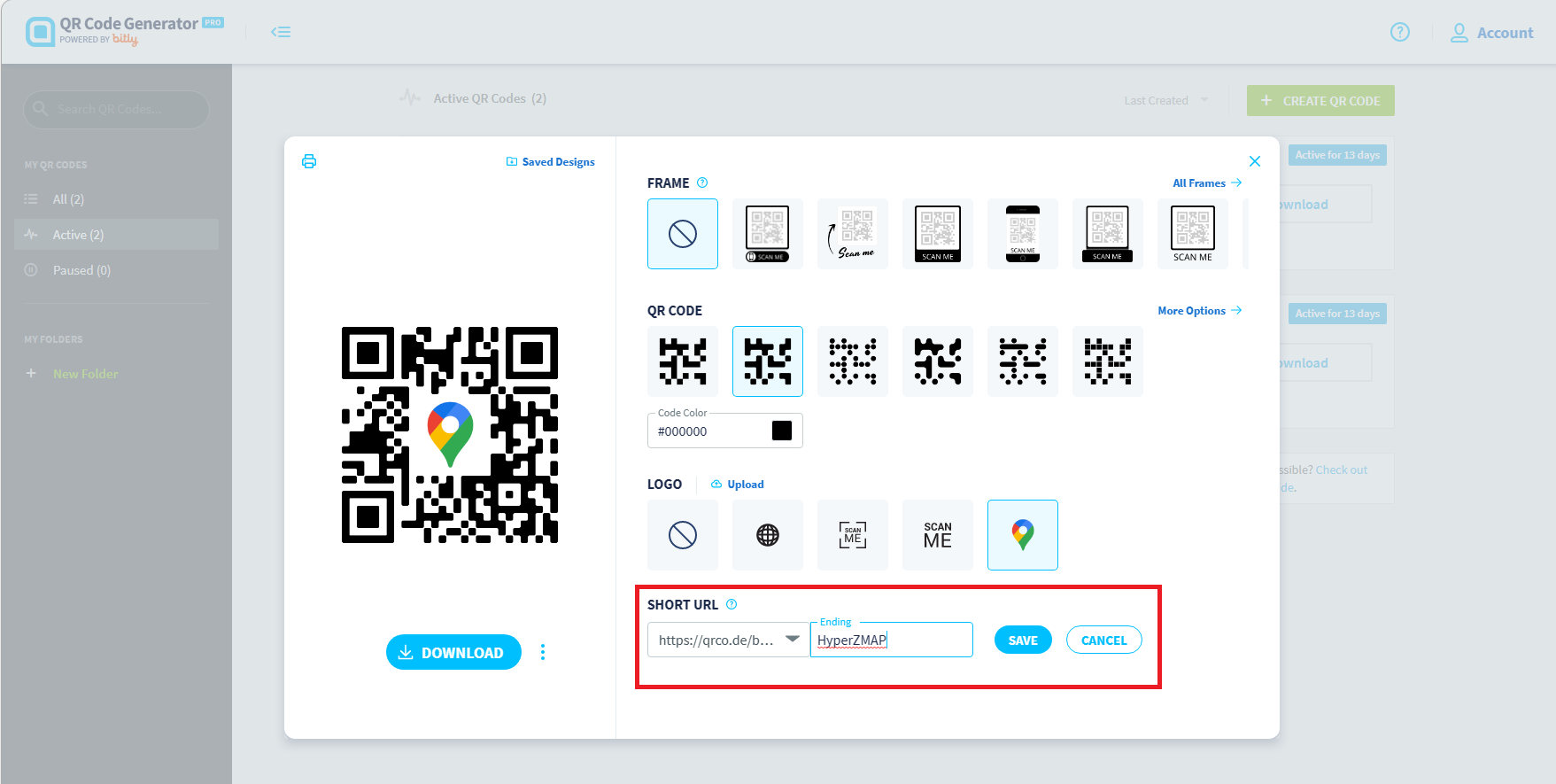 Cuối tùng bạn Save Design và chọn Download để tải mã QR CODE về máy.