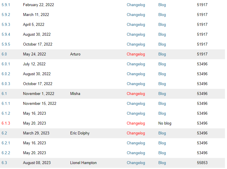 Cho đến trước bản cập nhật mới nhất ngày 8/8/2023 WordPress đang ở bản 6.2 mang tên Eric Dolphy.