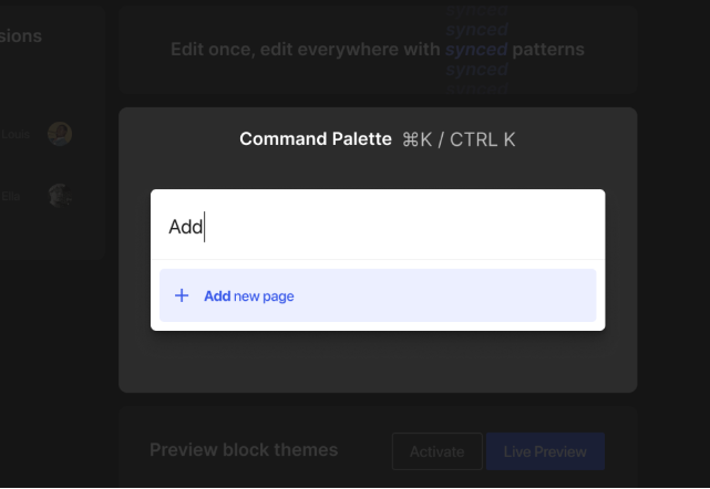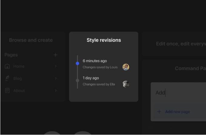 Để dễ dàng truy cập các tính năng mở rộng, bạn có thể chuyển đổi sang một mẫu cụ thể hoặc mở tùy chọn chỉnh sửa mới. Thông qua phím tắt đơn giản (⌘+K trên Mac hoặc Ctrl+K trên Windows), bạn có thể nhanh chóng kích hoạt hộp tìm kiếm ở thanh bên trong. Chế độ xem trang, hoặc bấm vào Thanh tiêu đề để dẫn bạn đến nơi cần và thực hiện những thay đổi cần thiết chỉ trong vài giây.