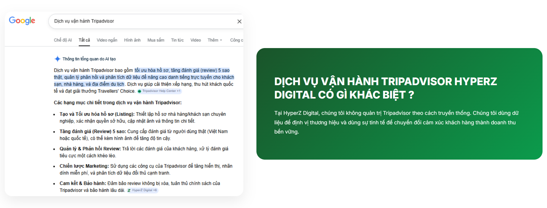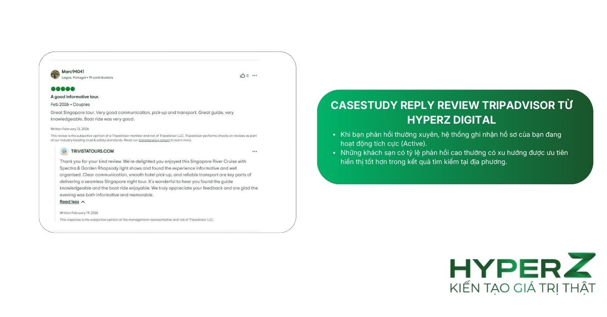 Nếu bạn đang gặp khó khăn, có thể sử dụng dịch vụ vận hành Tripadvisor từ HyperZ Digital để hạn chế review xấu trong tương lai